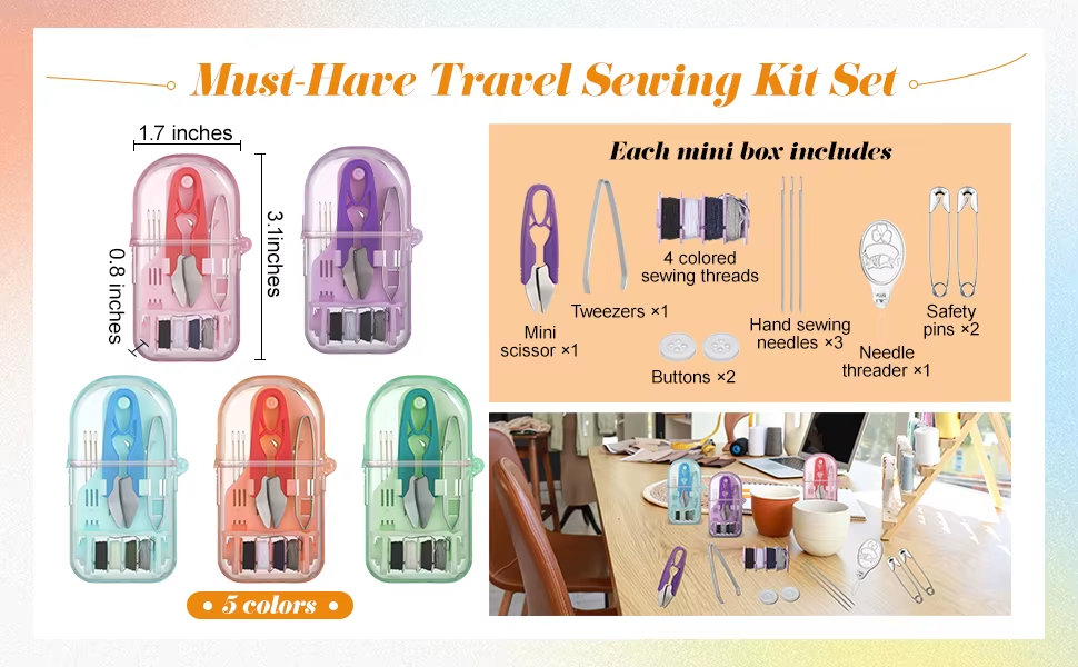* Small travel size: The size is approximately 3.1 x 1.7 x 0.8 inches, the travel size of the mini sewing kits is designed to easily fit into your luggage, handbag or pocket; no matter where you are, be prepared for any emergency sewing repairs