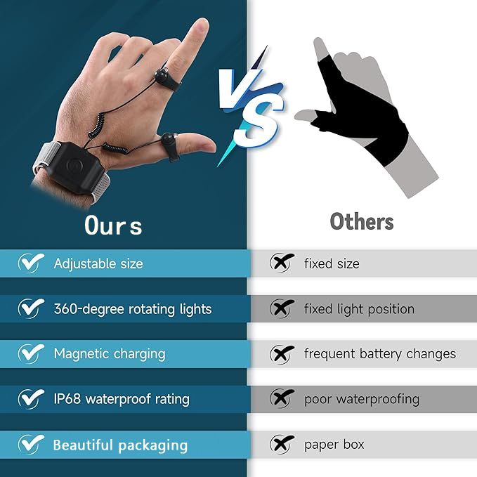 【Unique Design】This LED illumination ring moves away from traditional glove designs, featuring an adjustable size that offers a flexible and comfortable fit. Users can easily customize the fit to accommodate different finger sizes, ensuring convenience with every use.