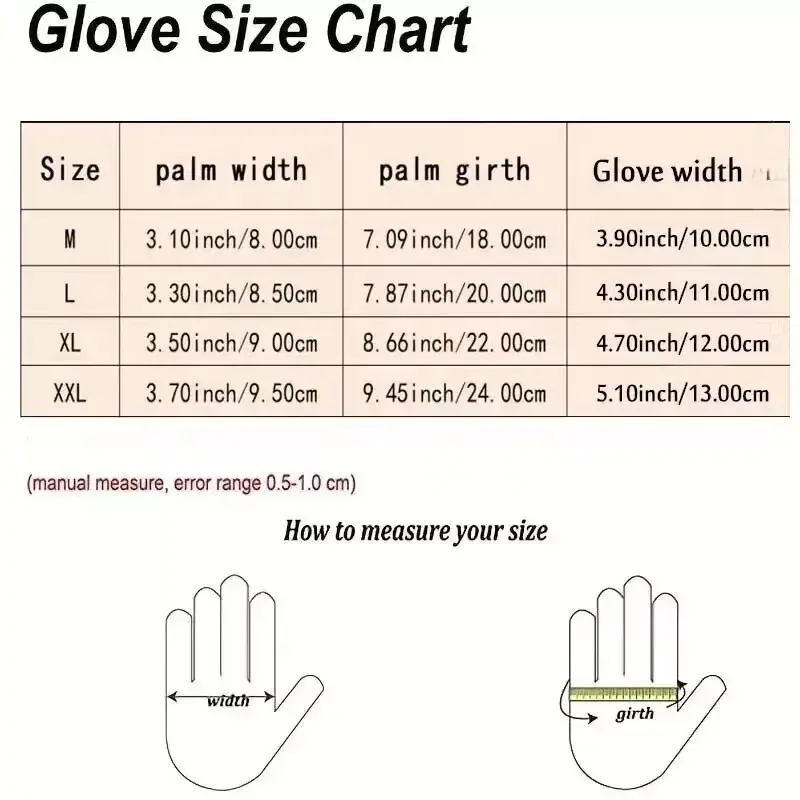 Please compare the size chart with your hands size before buying the gloves,Currently, the colors we offer are only black, and the sizes available are only XXL.