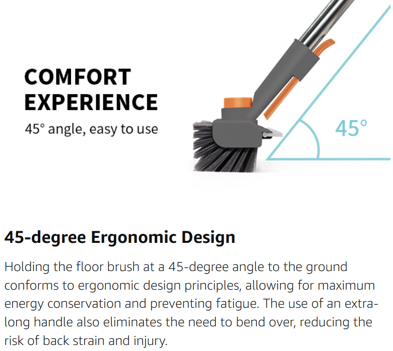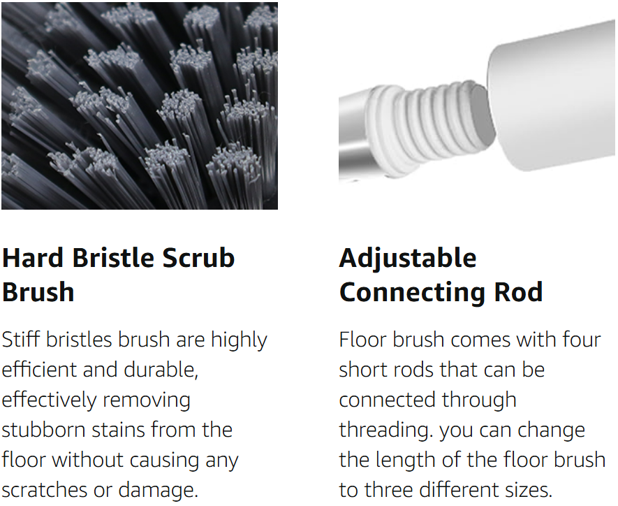 【Adjustable Floor Scrub Brush with Extendable Handle】: Say goodbye to backaches while cleaning! Our floor scrub brush comes with a three-section handle that can be adjusted to your preferred height . No more bending or straining—clean floors comfortably and efficiently.