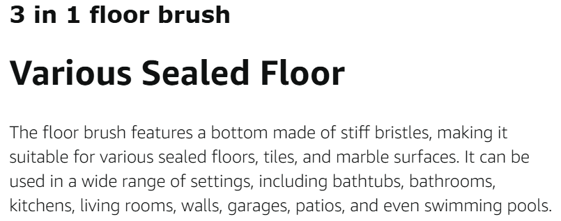 【Innovative 3-in-1 Floor Scrub Brush】: Our floor scrub brush is a game-changer! Combining a dual-sided scrub brush and a built-in scraper, it effortlessly tackles stubborn stains, dirty water, and dust. Say goodbye to tough grime with ease, thanks to the combination of tough bristles and a rubber squeegee.