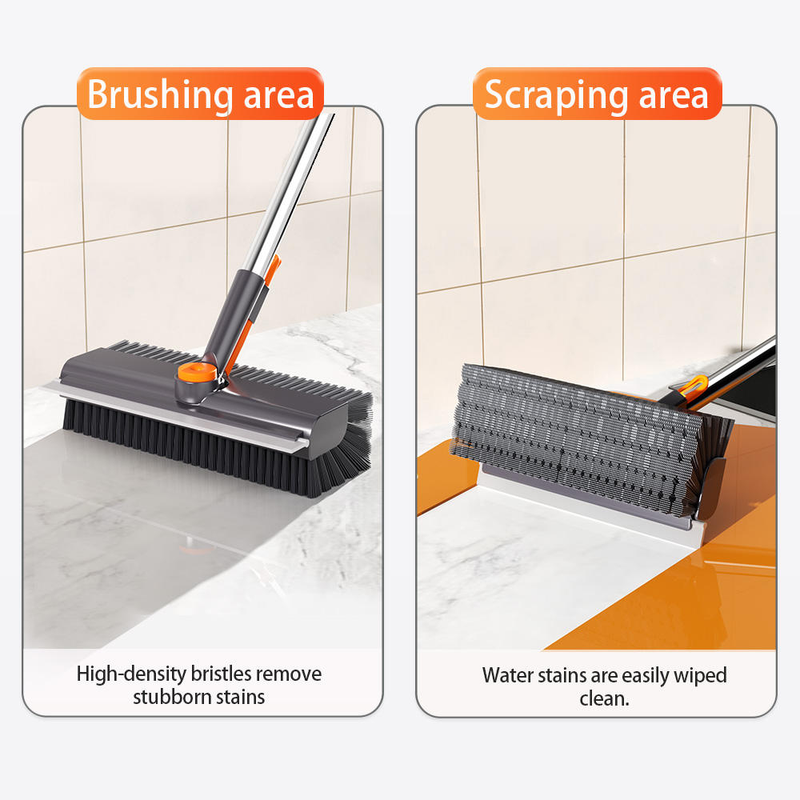 【Effortless Cleaning with 360-Degree Rotating Head】: Our floor brush features a 360-degree rotating head, making it a breeze to clean every nook and cranny. Designed with ergonomics in mind, it ensures comfortable use whether you're using the brush or the scraper. Easily clean bathroom walls and hard-to-reach corners with this versatile tool.