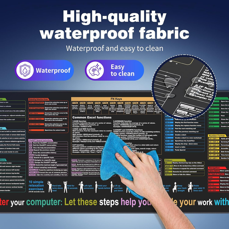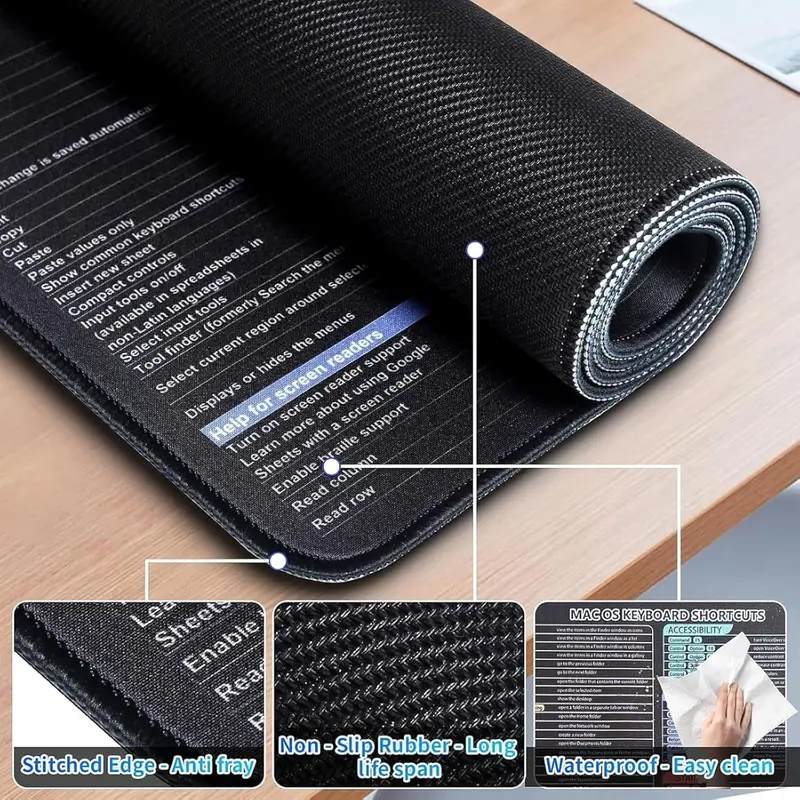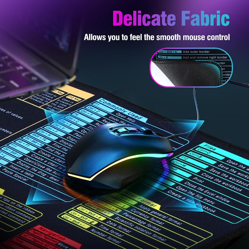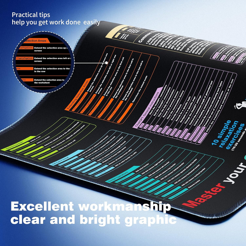 •Employee Appreciation Gifts: Our XL mouse pad with essential Excel shortcuts enhances work efficiency and becomes a focal point in your office. Treat your team to a productivity boost today!