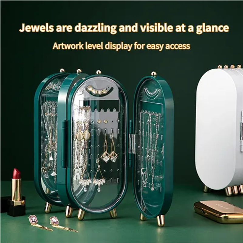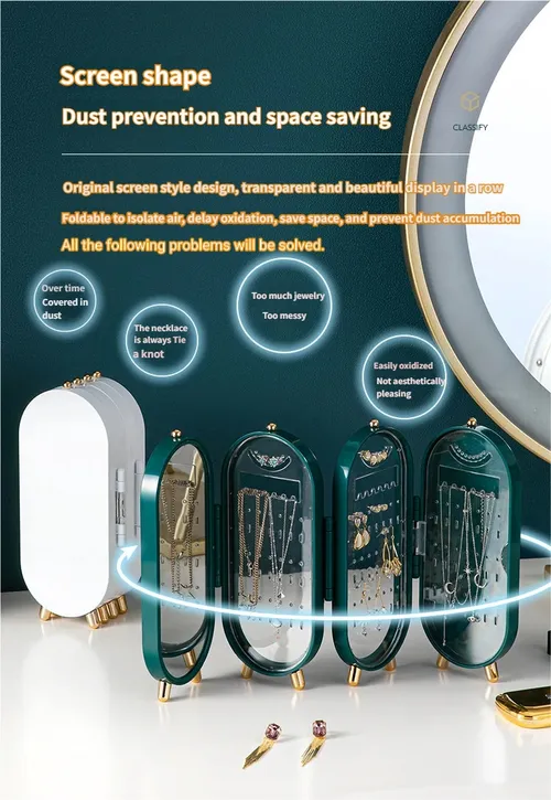 ✔ Elegant acrylic shell✔ Foldable screen-style storage✔ Dust-proof & space-saving✔ No more tangled jewelry