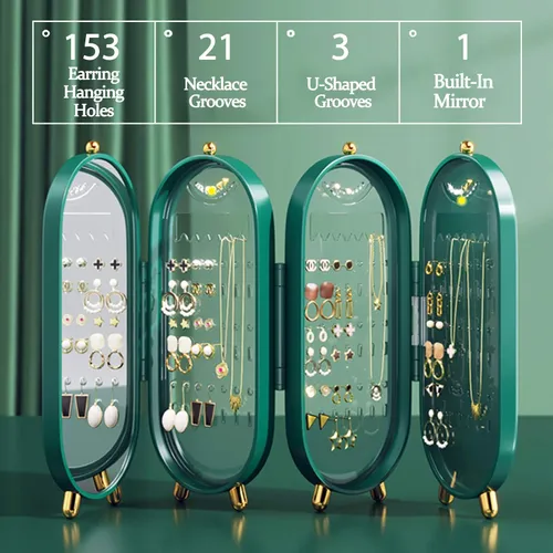 ✔ 153 Earring & Stud Holes✔ 21 Necklace Grooves✔ 3 U-Shaped Hooks✔ Built-in Mirror for easy wearing