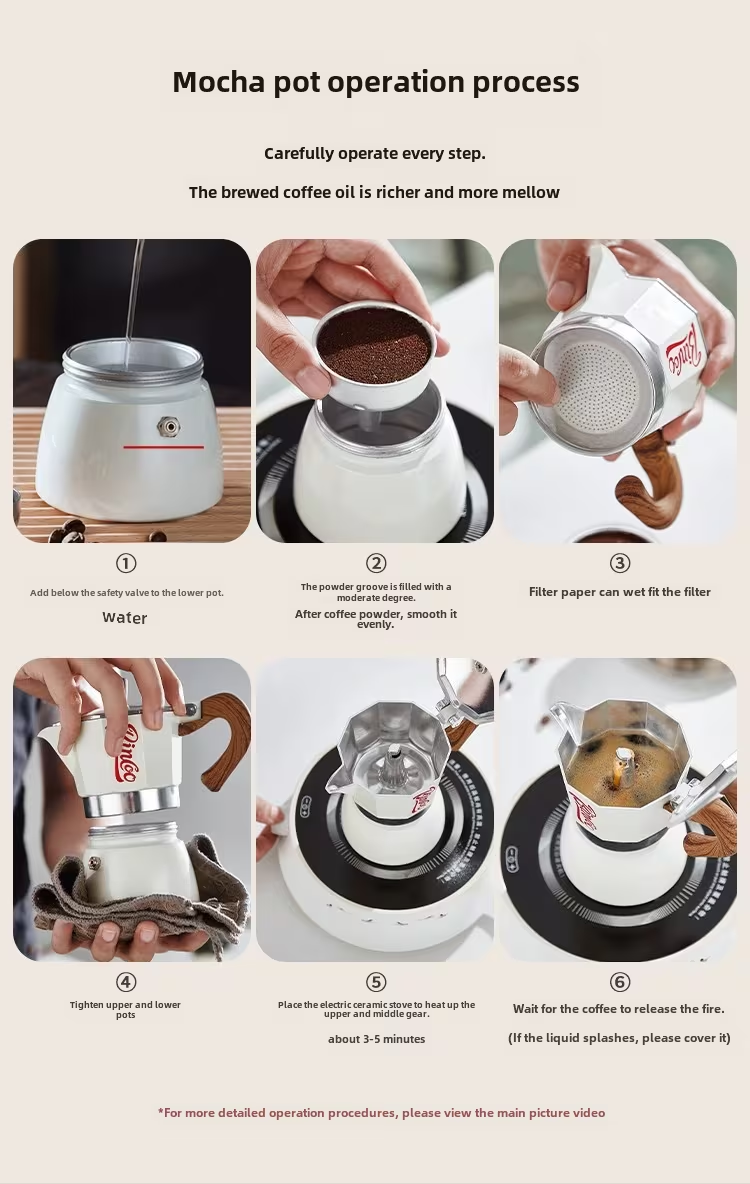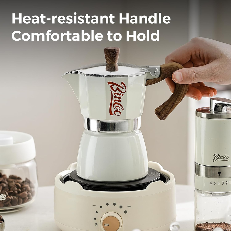 【Multi-Stove Compatibility】Crafted from durable polished aluminum with excellent heat conductivity, this stovetop espresso maker works seamlessly with gas stoves, electric ceramic stoves, and propane camping stoves.