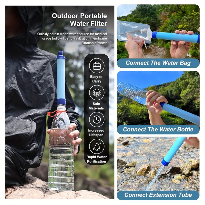 【Emergency readiness】: Be prepared for survival situations with a water filter that guarantees access to clean drinking water on the go.