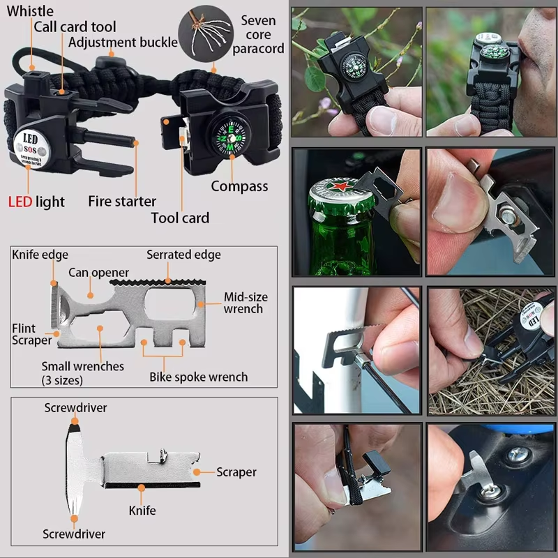 【20 in 1 Survival Bracelet】: it includes more survival tools: Upgrade compass, SOS led light, flint fire starter, whistle, Thermometer, wear this while traveling, it is not only a decor, but also a survival gear kit
