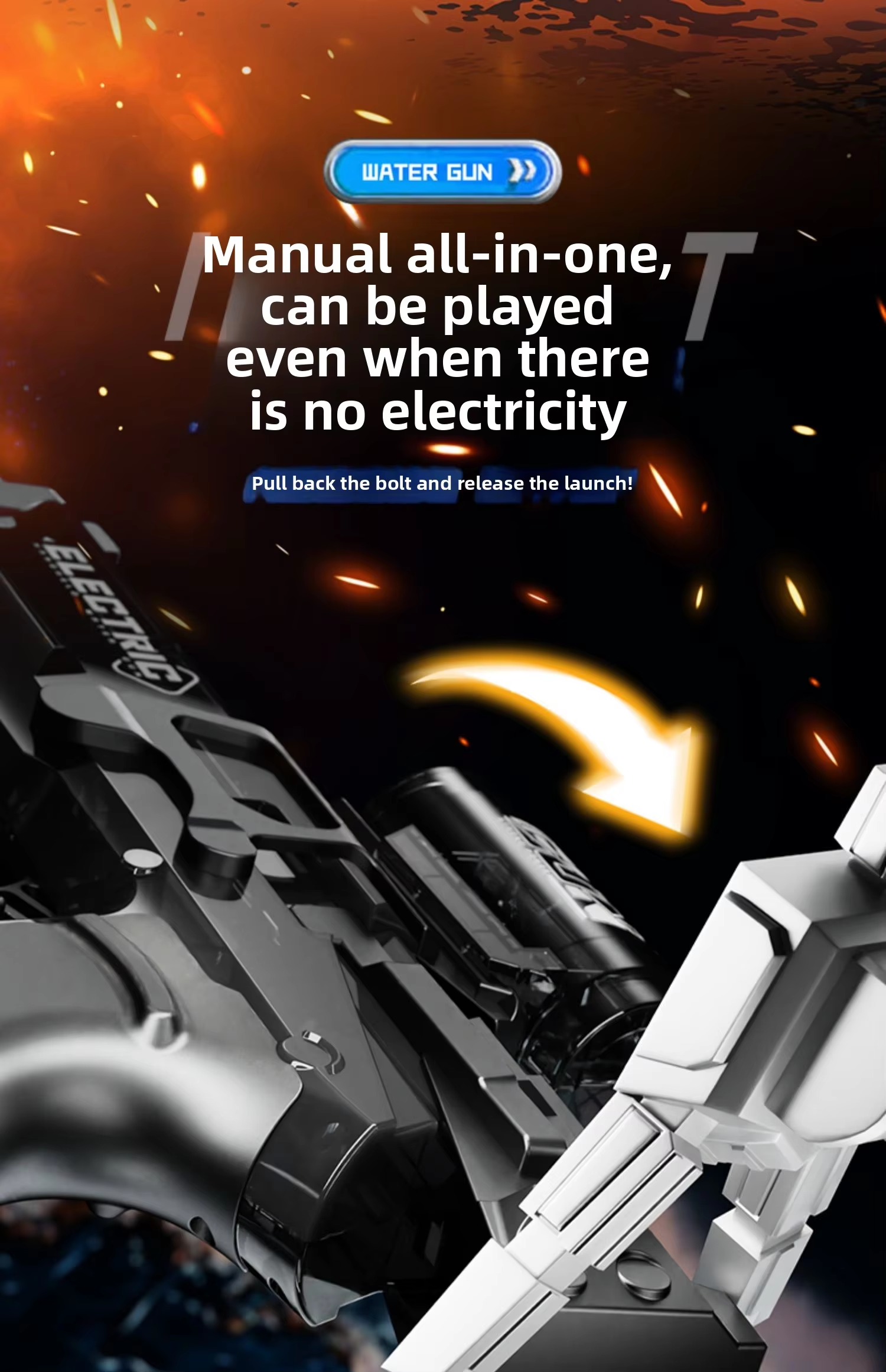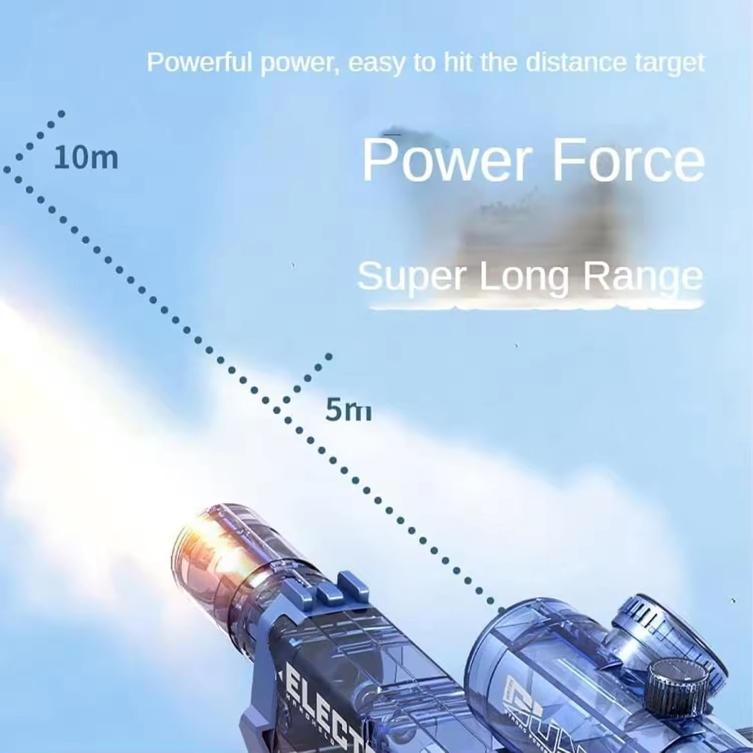 With our Long Range Electric Water Gun, enjoy effortless, continuous firing and hit targets from afar.