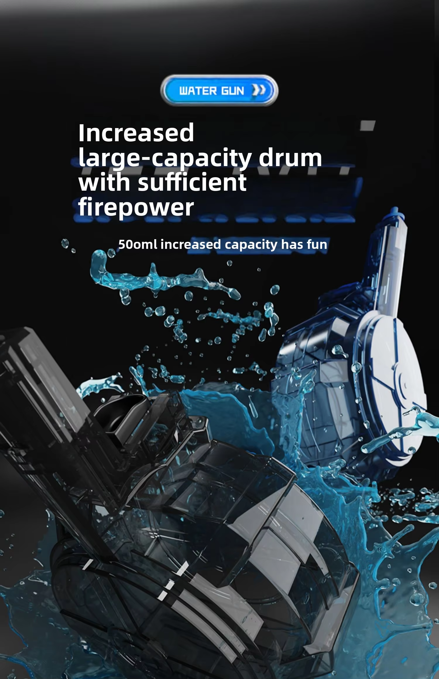 It adopts a 500ml large-capacity water storage tank, allowing you to store a large amount of water at one time, and is equipped with a 50ml capacity spare magazine, which is more convenient to carry.