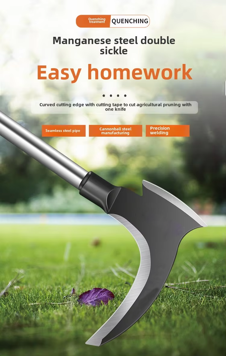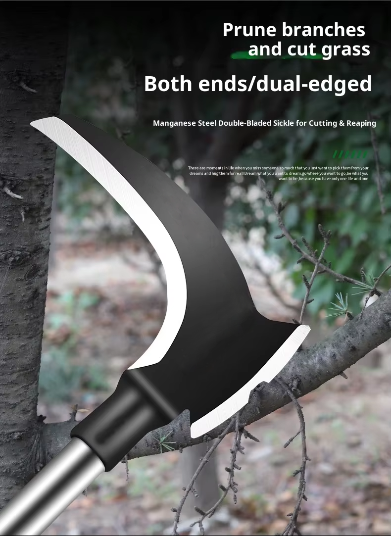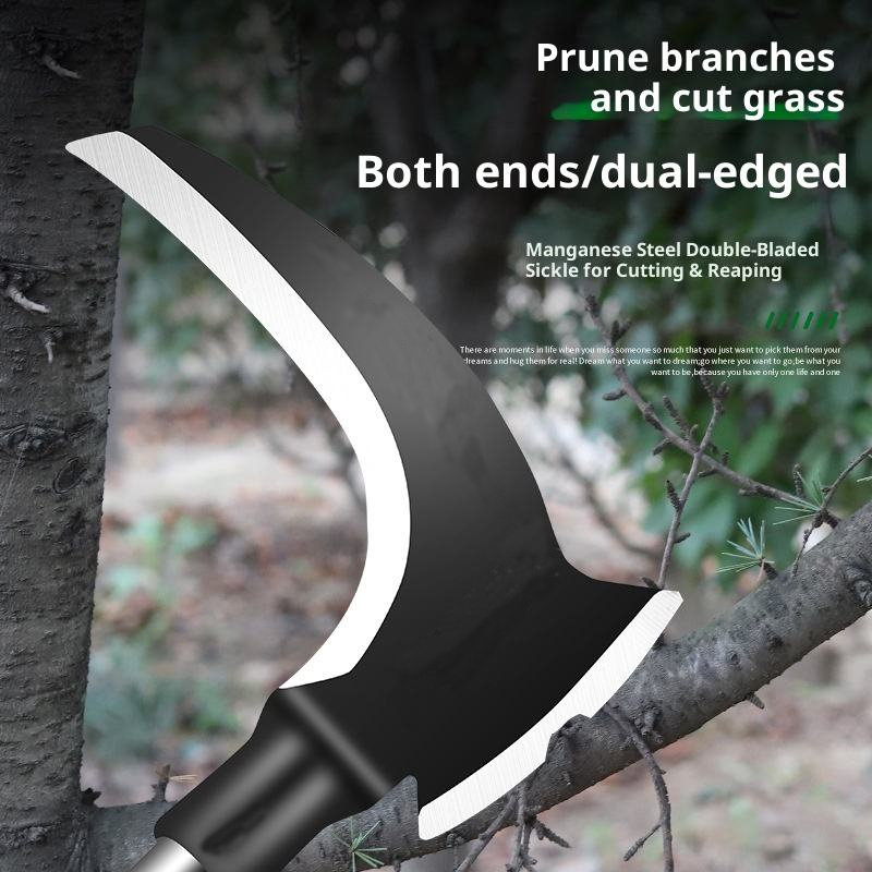 Double-Bladed Manganese Steel Sickle — Power Cutting Tool for Farming & Bush Clearing