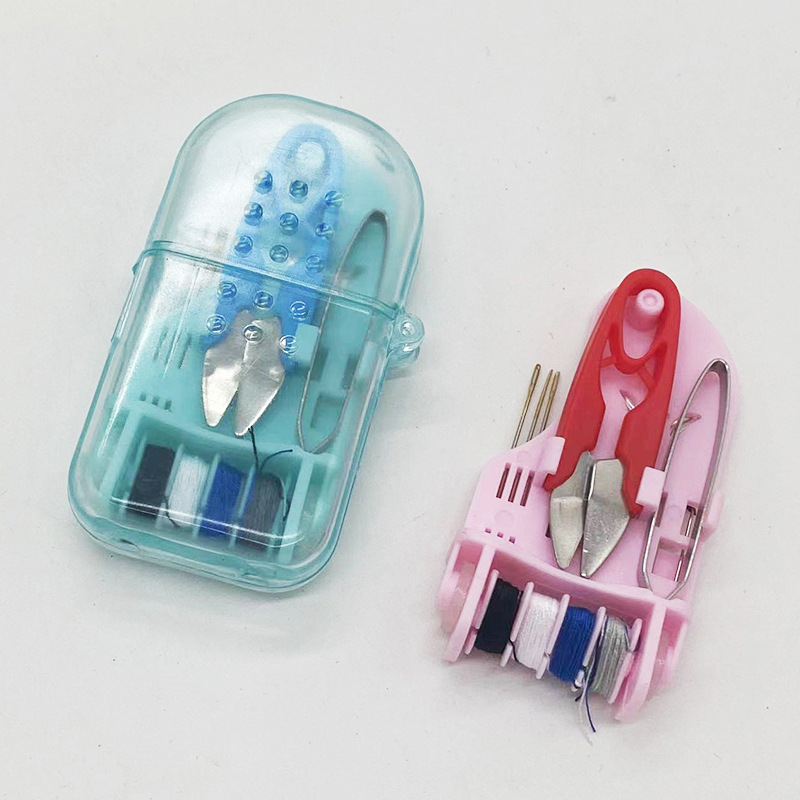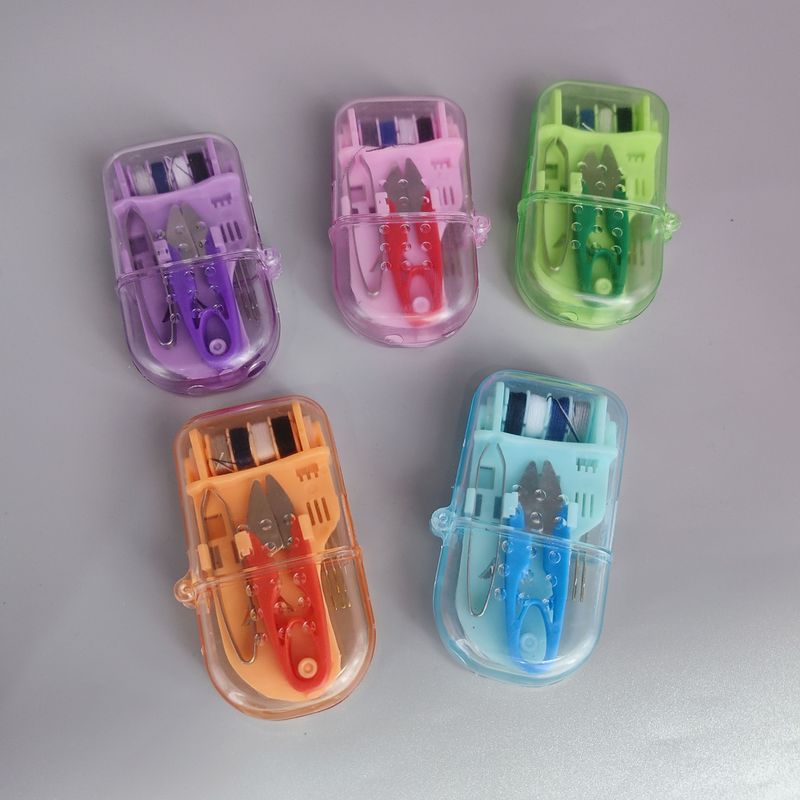 Includes needles, thread, scissors and thimbles. The organized compact case prevents loss. Perfect for students, offices and car glove compartments.