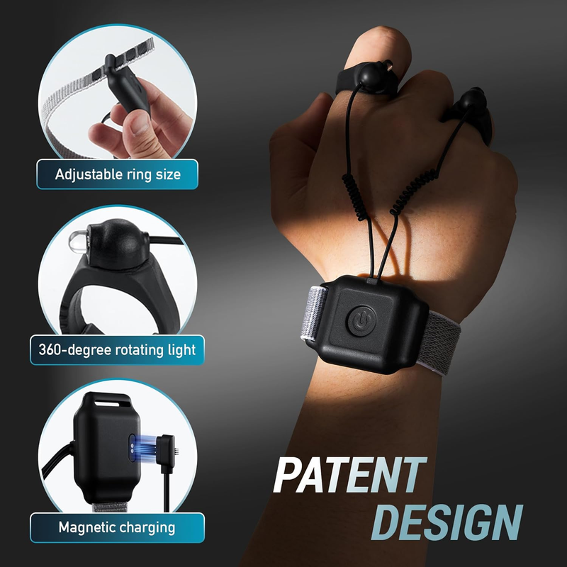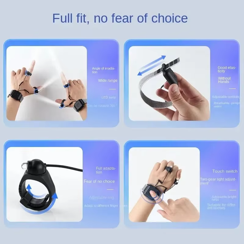 【Unique Design】This LED illumination ring moves away from traditional glove designs, featuring an adjustable size that offers a flexible and comfortable fit. Users can easily customize the fit to accommodate different finger sizes, ensuring convenience with every use.