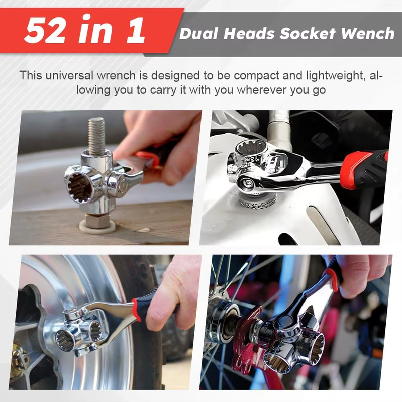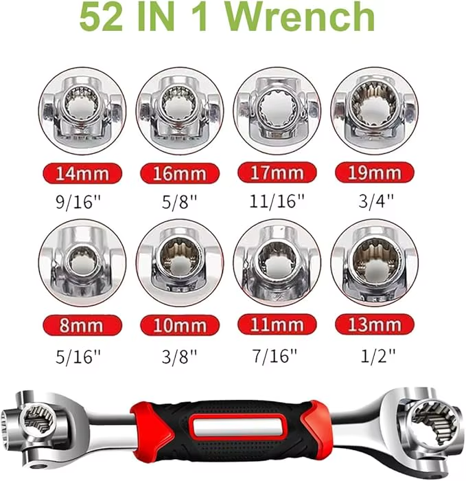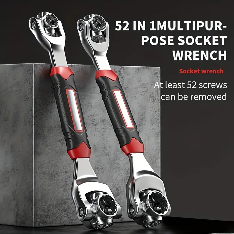 52-in-1 Multi-Function Socket Wrench with Non-Slip Ergonomic Handle & Torque Wrench - 8 Sockets (Metric & SAE), 360° Rotating Head for Car Tire Removal, Automotive Repair Tool for Mechanics & DIY , Vehicle Maintenance, Professionalgrade Tool, Precision Engineering, Home Garage Tools, Power Tools, Mechanics And Technicians, Motorcycle Repair, Sleek Tool Design, Corrosionresistant Material