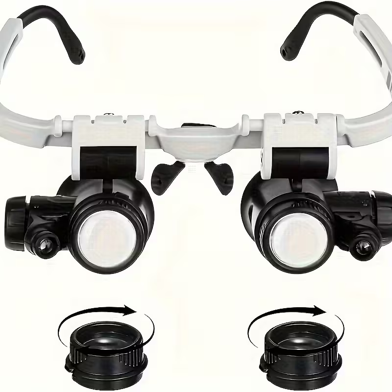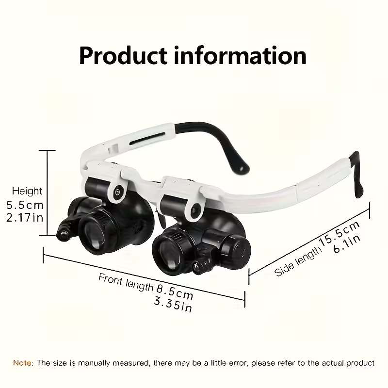 - Flexible adjustable design- The retractable temple support can be adjusted to proper length to fit most head. You can adjust the angle of lens barrel and LED lights, and brightness of the LED light is also adjustable