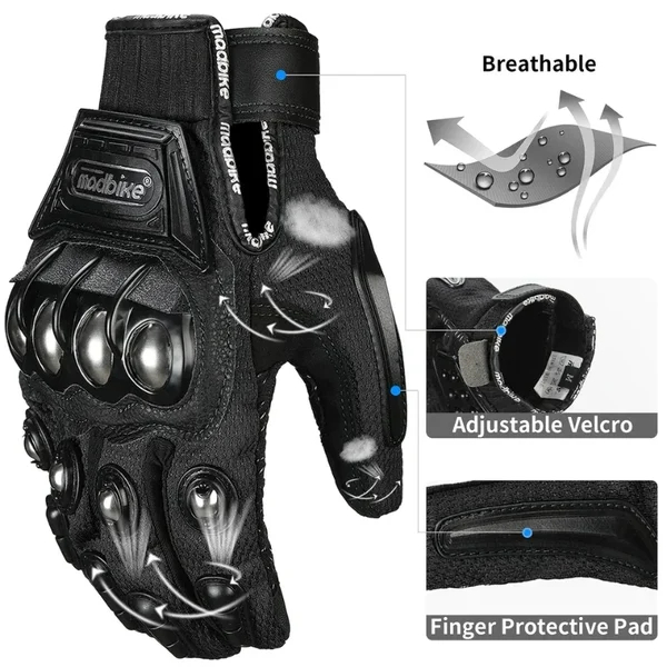 Introducing our brand new indestructible motorcycle gloves, the ultimate protective gear forevery serious rider out there. These gloves are specially crafted to provide superior durabilityand unbeatable protection, so you can enioy your ride with complete peace of mind.