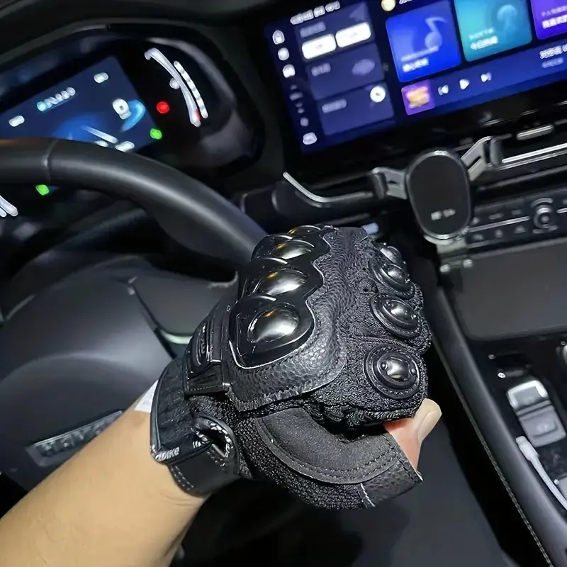 Features: Touch Screen, Non-Slip, Hard Rubber Shell, Breathable, Adjustable, Soft,lightweight, Comfortable.Material: The gloves is made of durable microfiber PU leather and breathablestretch nylon material, Wear-resistant, lightweight and fast drying. The palmreinforcement, protects hands from impact and abrasion.