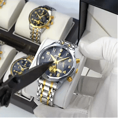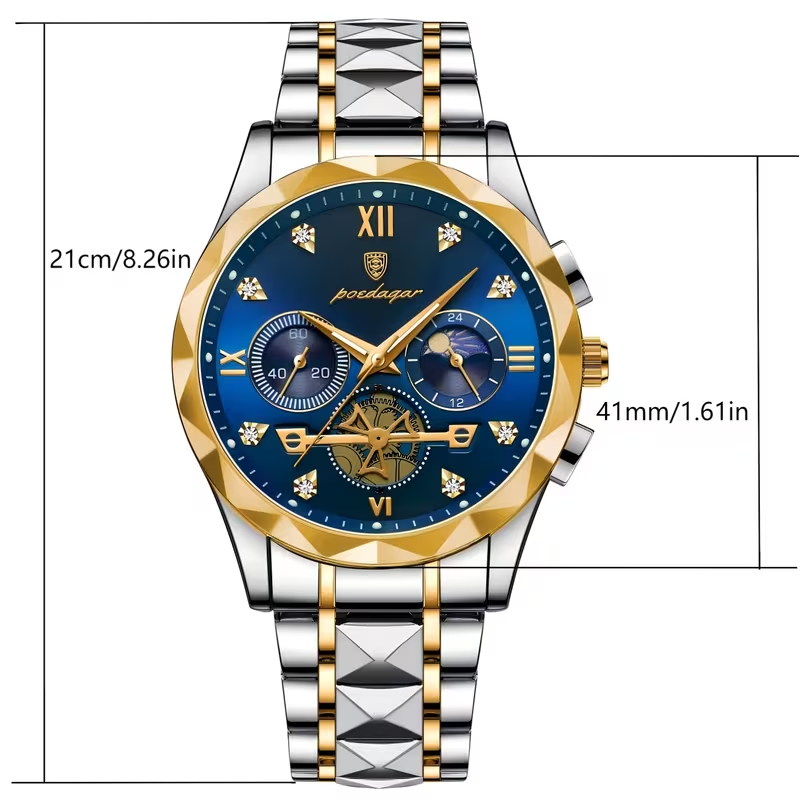 ⌚Business Classic Men Watches:Silver gold two tone strap paired with blue big face .Roman numerals large face easy to read, luxury business style, adjustable strap, unique choice, high-quality time companion