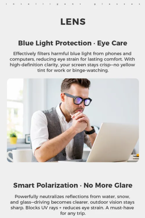 👓 Blue Light Blocking Lenses & All-Day Comfort:HD lenses filter 99% harmful blue light from screens, reducing eye strain without color distortion. Lightweight unisex frame (similar to regular glasses) with IPX4 sweat resistance ideal for work, driving, and outdoor use.