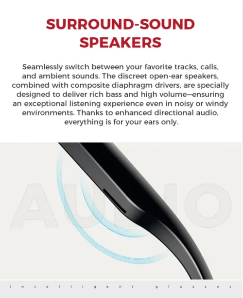 🔉 Immersive Audio & Smart Controls:Open-ear speakers with bass-enhanced membranes deliver rich sound without blocking ambient noise. Single-touch controls manage calls/media. Environment-aware volume adjusts automatically for optimal clarity during commutes or meetings.