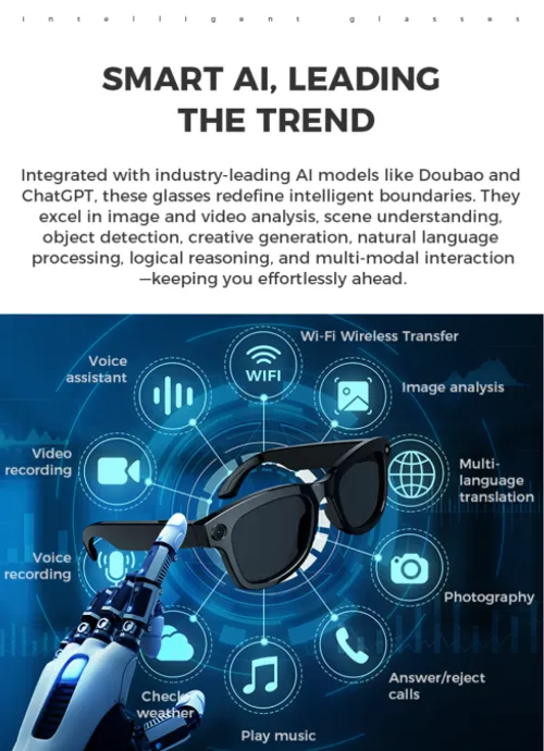 Smart AI Camera Glasses – HD Recording, Bluetooth Call & Real-Time Translation