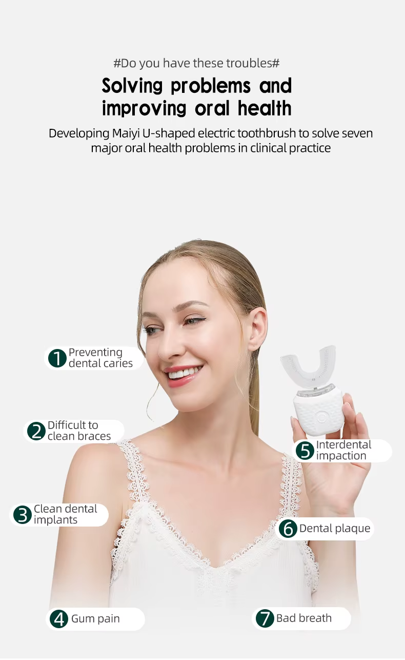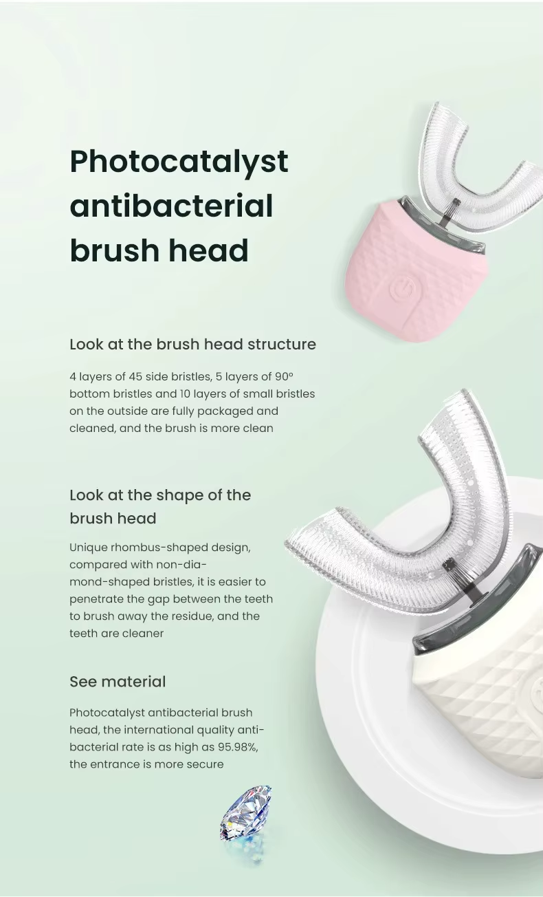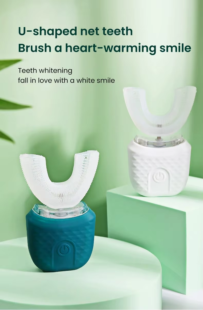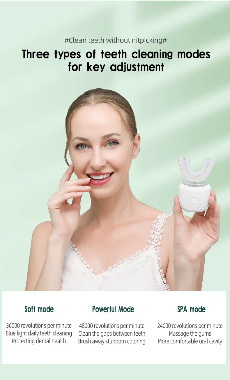 U-Shaped Electric Toothbrush ,Blue light whitening removes,360° deep clean,USB rechargeable and waterproof,Hands-free automatic
