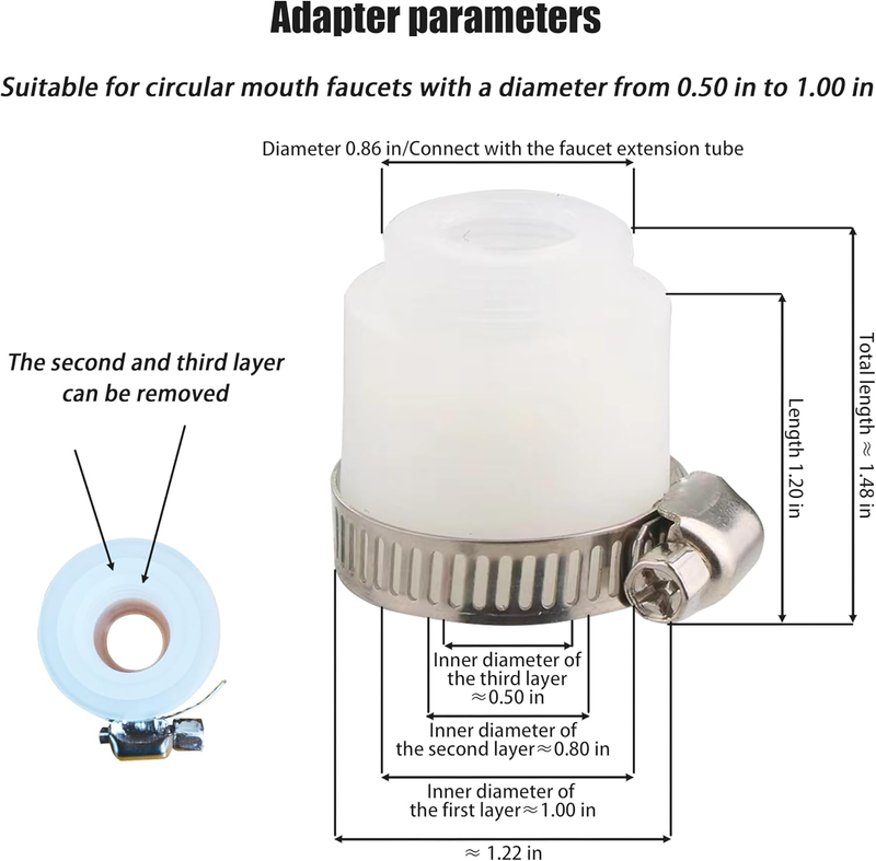 faucet extension tube solves the problem that the faucet is too far from the ground, it can stop you splashing everywhere and reduce the cleaning job; It also solves the problem of insufficient space, you can lift it and bend it down, adding a lot of usage scenes; We have configured 3-layer inner diameter universal adapter compatible with diameter of 13-25mm(0.5-1.0inches) to fit the majority of faucets.