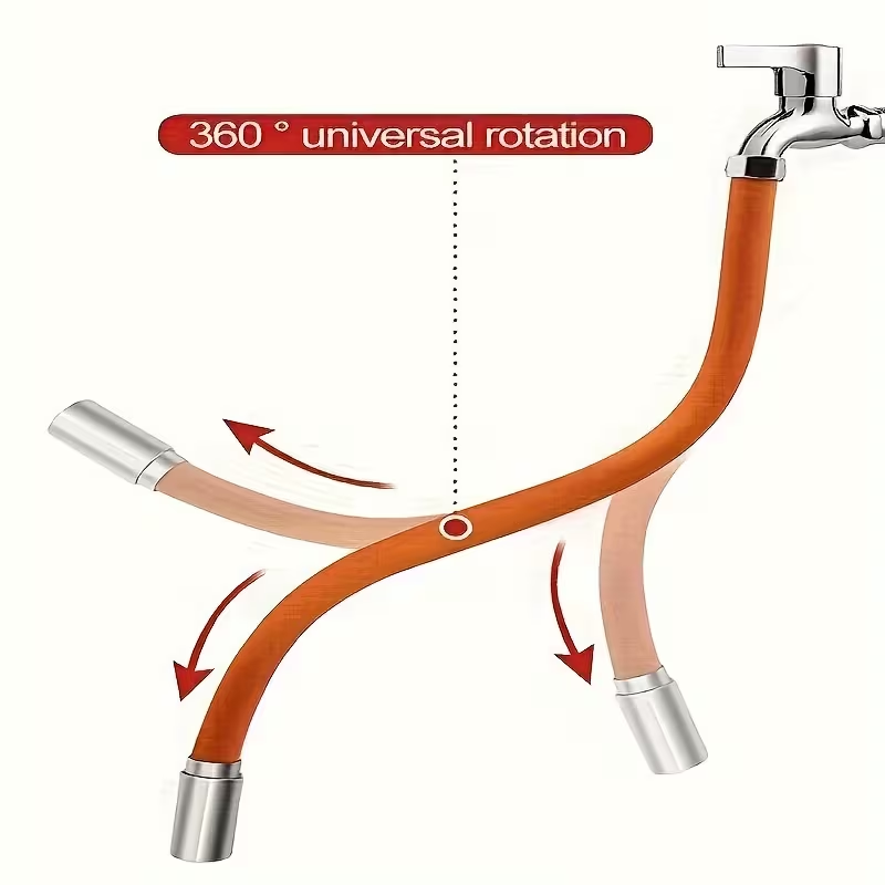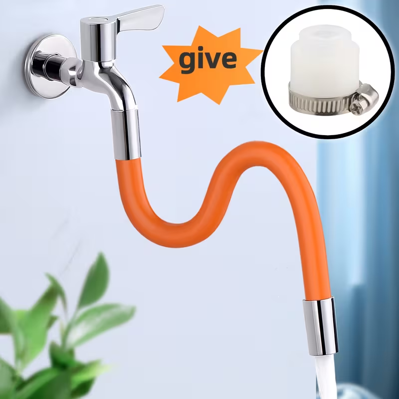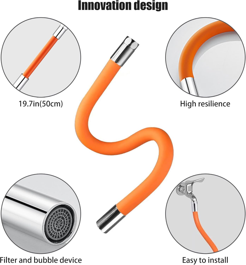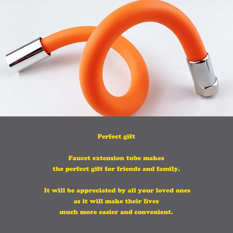 faucet extension tube adopts lengthened design with 17.7in(45cm), which meet almost all family needs; It is excellent flexible and high resilience, you can release your hands when using, and you don't need to equip a holder for it like traditional hose; The tube mouth is equipped with splash proof device, which can limit the water flow and greatly save water; The installation is so easy, elderly and women can easily handle it.