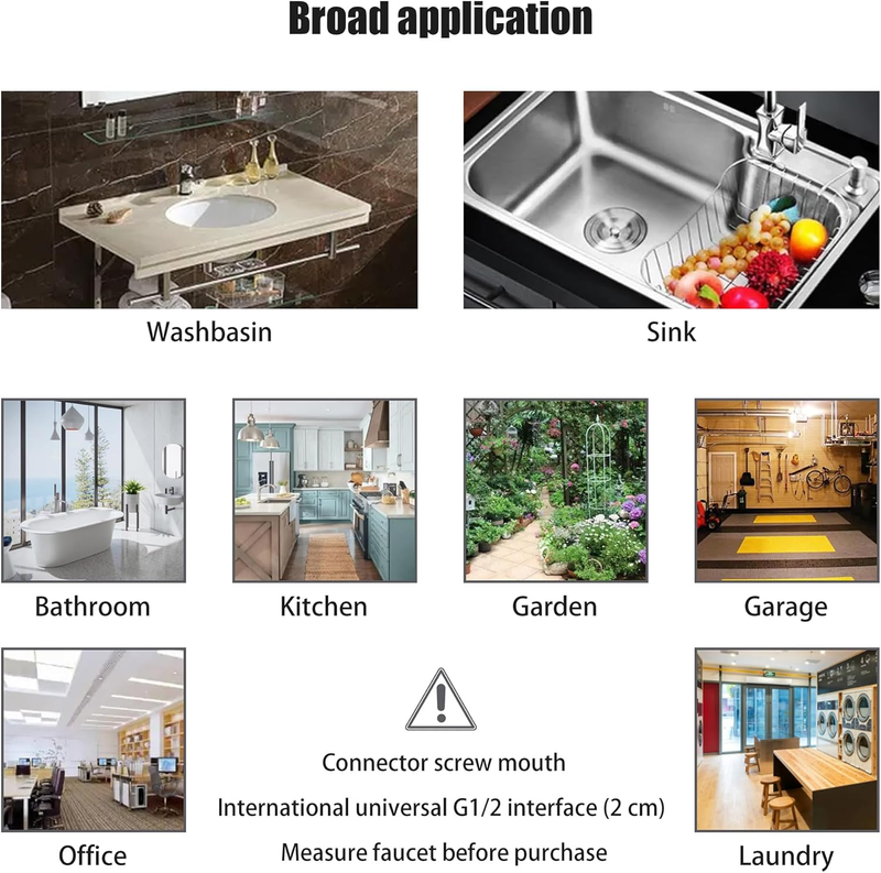 Shaoduoli faucet extension tube is widely applicable in washbasin, sink, basin, bathroom, toilet, kitchen, garden, balcony, courtyard, office, dormitory, garage, operation room, rental house, laundry, etc; Please measure your faucet size before purchase.