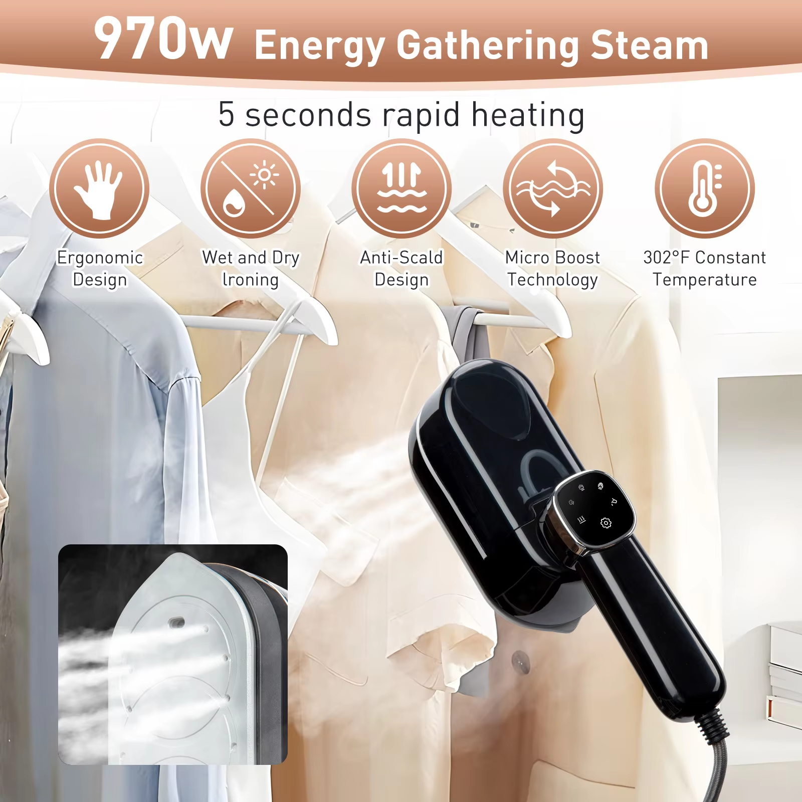 【2-in-1 Steam Iron】 The steamer can meet all your ironing requirements with ease. It functions as both a traditional dry iron and a steam iron, providing you with flexible options for garment care. When you plug in the steamer without pressing the button, it functions as a traditional iron. After pressing the button, you can switch to steam mode for added versatility.