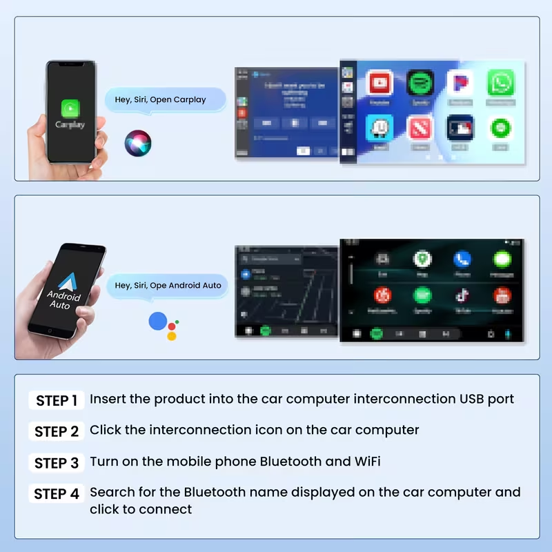 Device Compatibility 📱Exclusively designed for vehicle models from 2017 and later, this smart wireless adapter upgrades the original wired CarPlay/Android Auto functionality to wireless connectivity, enabling seamless integration between mobile devices and the car's infotainment system.Compatible with iPhone and Android devices. The wireless connection ensures seamless connectivity. Fast connection with no delay provides a smooth experience. Ideal for safe driving with hands-free calling.