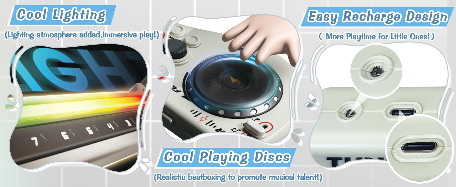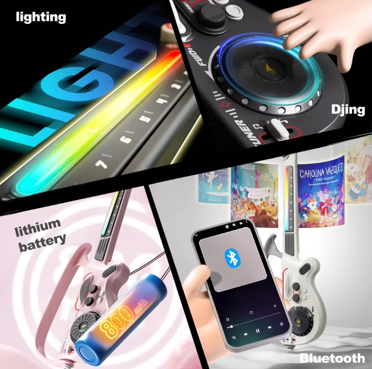 Integrate electric guitars, DJ decks and colorful lights together. Children can switch between playing guitar melodies and simulating the grabbing actions of a DJ, thus doubling the entertainment effect of the music.