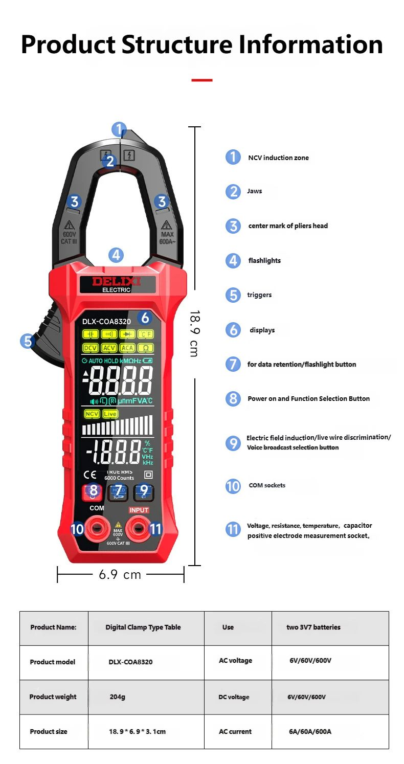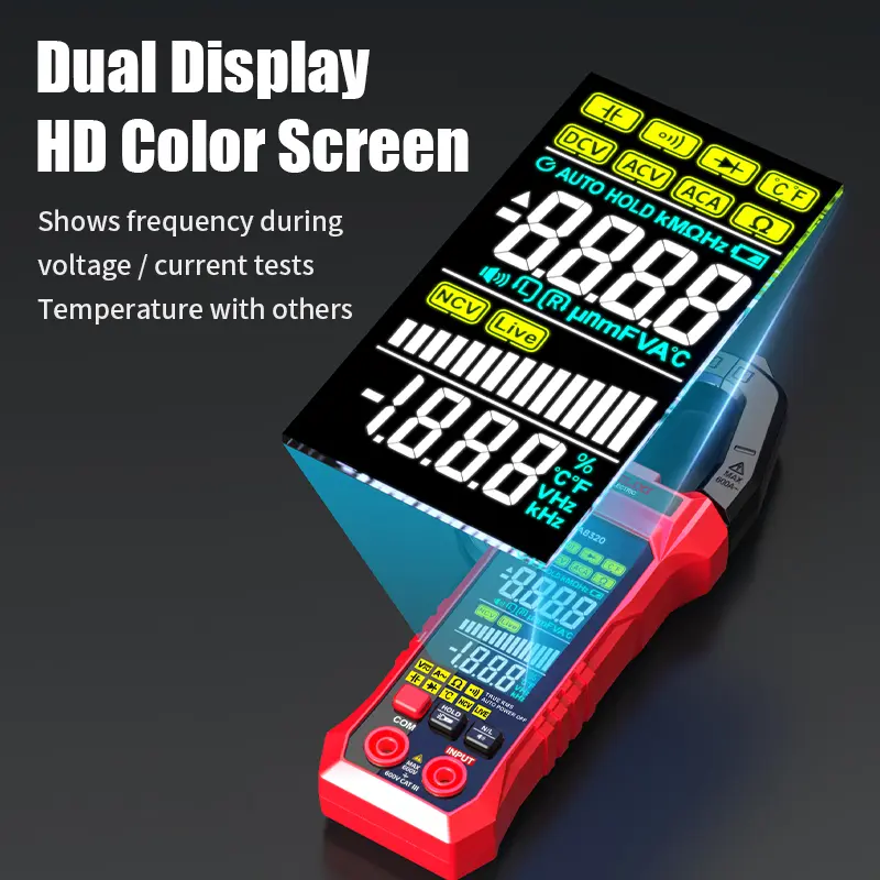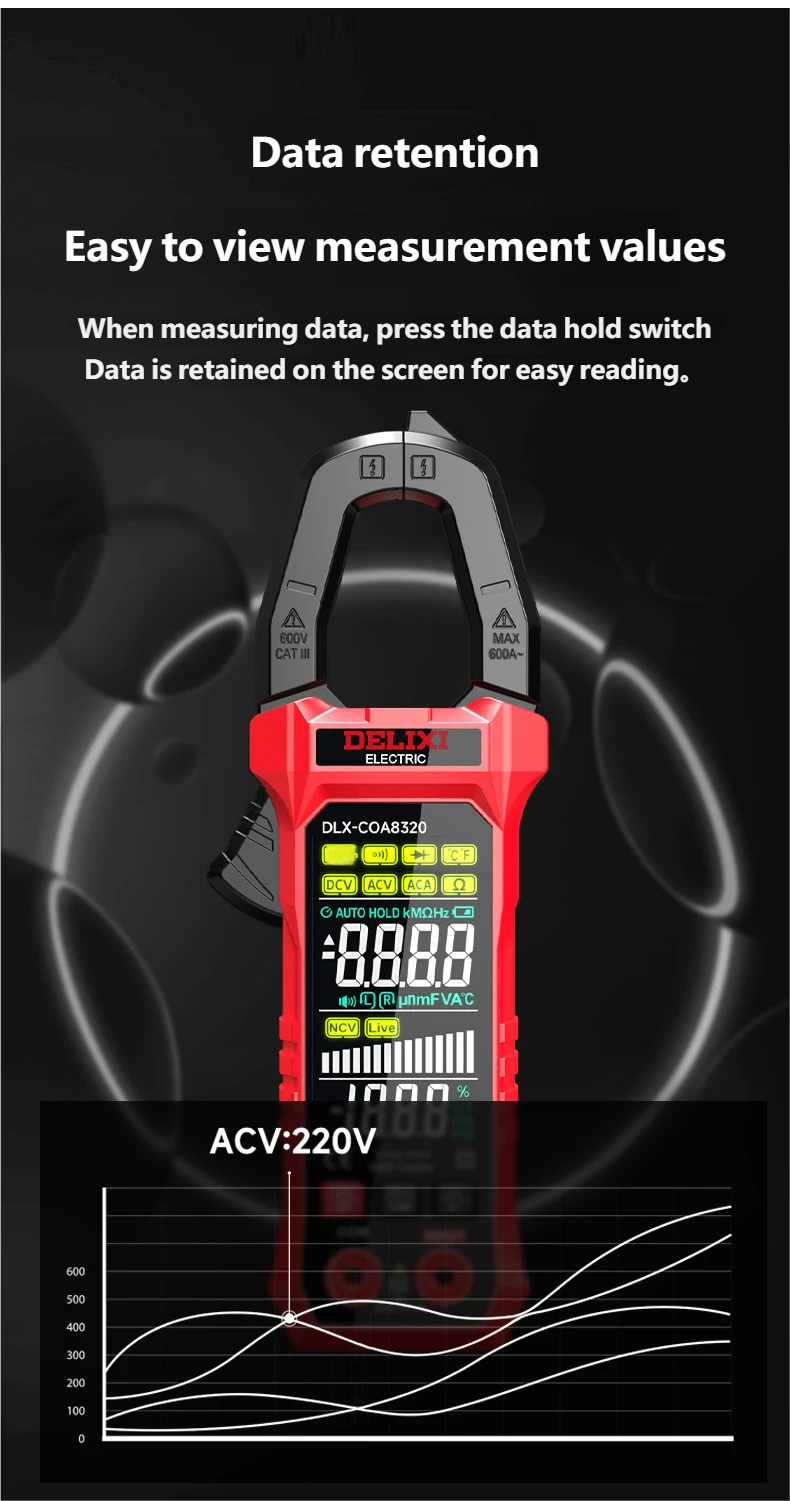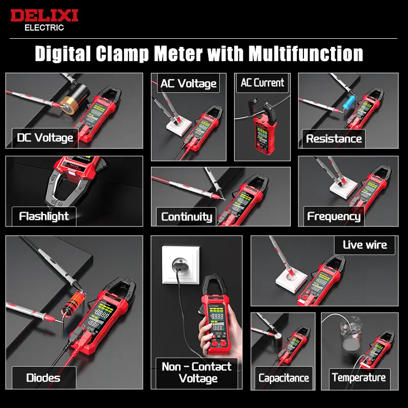 ➤ High-Precision Measurements: 6000-count True-RMS clamp meter with AUTO mode selection for measuring AC/DC voltage, AC current, resistance, continuity, frequency, and temperature. Also supports measuring capacitance, diodes, and detecting live wire.