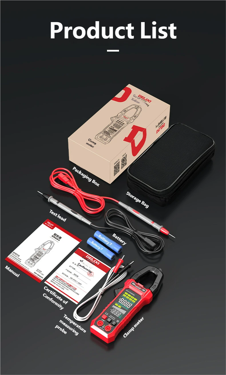 ➤ Complete Kit: Includes test leads, temperature probe, AAA batteries, storage bag, and user manual. Everything needed to start measuring right out of the box. Ready for immediate use.