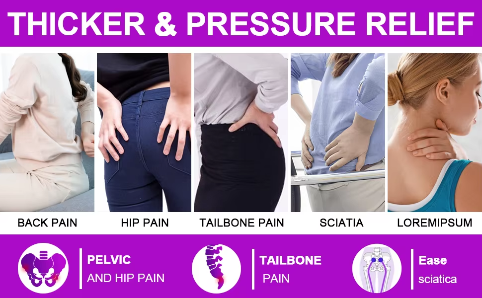 This cushion is beneficial in distributing the pressure on the buttocks and thighs, reducing the pressure on the muscles and the sciatic nerve. It helps alleviate the tailbone and lumbar spine problems of people who sit for long periods. There is no need to worry about the cushion lacking cushioning effect or collapsing.