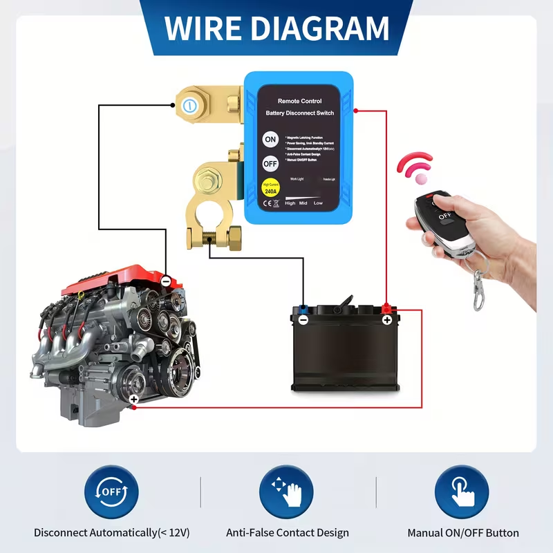 12V/24V compatible, with a continuous current of 240A and an instantaneous current of 500A, it can easily handle heavy loads. Carry the remote control with you at all times and control the power freely.