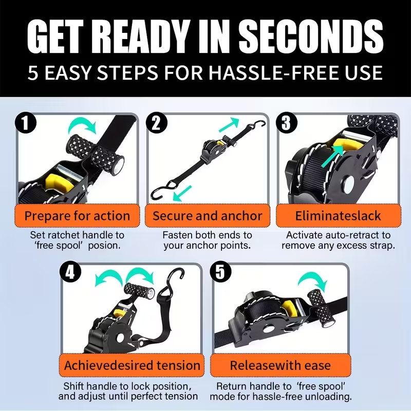 Retractable Ratchet Strap – One-Click Secure Strong & Smart Cargo Tie-Down