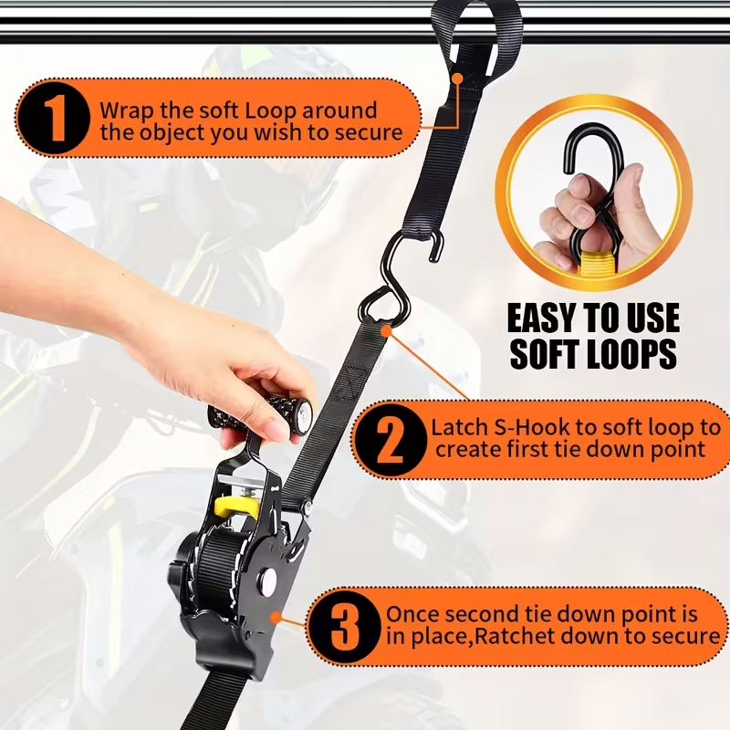 1x100 Retractable Ratchet Tie Down Straps Heavy Duty with Soft Loops Non Slip No Tangle for Motorcycle Cargo Trailer and Truck Transport Durable Nylon Rope Adjustable Ropes1x100 Retractable Ratchet Tie Down Straps Heavy Duty with Soft Loops Non Slip No Tangle for Motorcycle Cargo Trailer and Truck Transport Durable Nylon Rope Adjustable Ropes